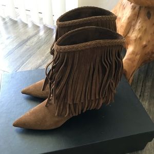 SAINT LAURENT Fringe Suede Boots