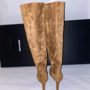 SAINT LAURENT Genuine Suede Heeled Boot Size 39 in Camel NIB