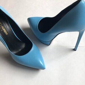 EXCELLENT CONDITION SAINT LAURENT PARIS JANIS HEELS IN GLACIER BLUE 5" HEEL