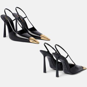 SAINT LAURENT JEANNE SLINGBACK PUMPS IN SMOOTH LEATHER SIZE 37 NIB