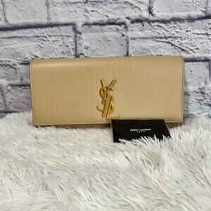 SAINT LAURENT Kate Monogram Clutch Tan