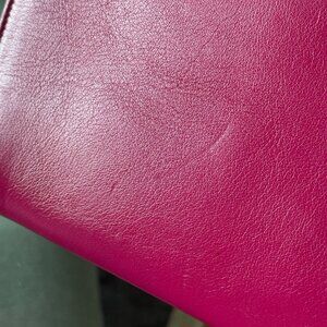 - Condition: Slight/weak storage odor that will easily go away with use. There is some light discoloration/darkening on the corners, light scuffing/marks on the wax edging around the handles, light exterior scuffs, and some transfer marks on the strap where it comes into contact with the metal hardware.