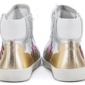 MID TOP SNEAKER WITH APPLIQUÉ "LOVE," STARS AND GLITTER PANELS AND SL/06 AND SAINT LAURENT SIGNATURE EMBOSSED BACK COLLAR