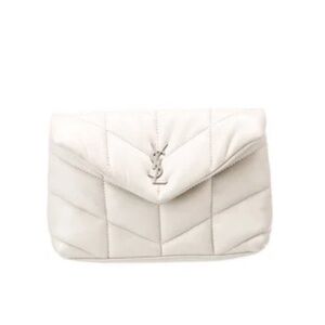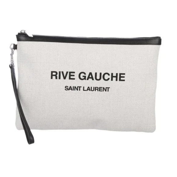SAINT LAURENT Linen Canvas Rive Gauche Zipped Pouch Optic White