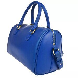 SAINT LAURENT Logo Baby Duffel 2Way Shoulder Hand Bag Leather Blue