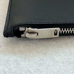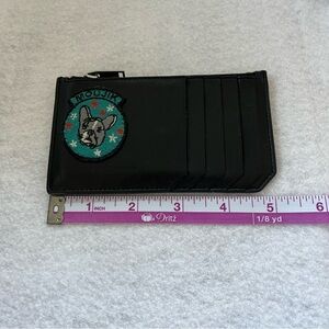 SAINT LAURENT Moujik French Bulldog Fragment Card Holder Black Leather