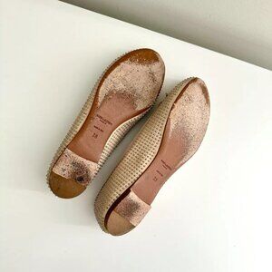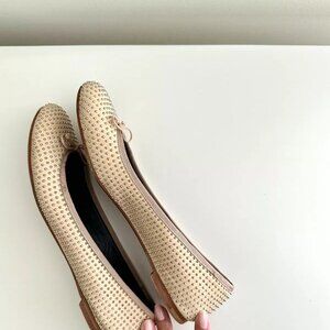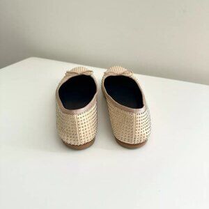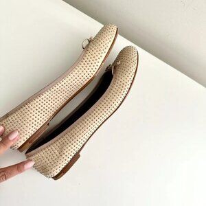 SAINT LAURENT Nude Leather Silver Studded Bow Ballet Flats Size 38
