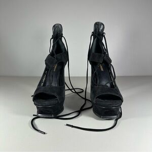 SAINT LAURENT PARIS Black Velvet Tribute 105 Platform Sandals