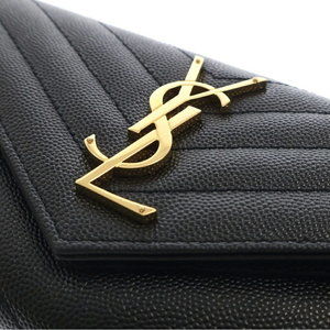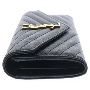 SAINT LAURENT PARIS Cassandra V Stitch Flap Wallet Black Long Leather Includes a Certificate of Authenticity!