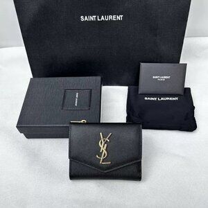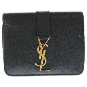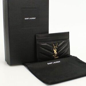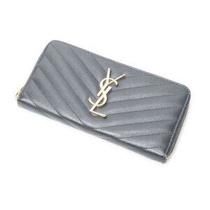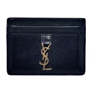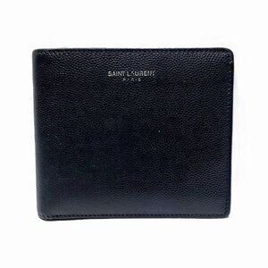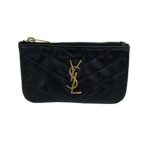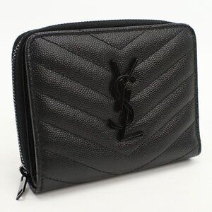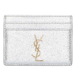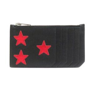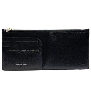 SAINT LAURENT PARIS FRAGMENTS ZIPPED CARD CASE IN GRAIN DE POUDRE LEATHER