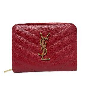 SAINT LAURENT PARIS Monogram Compact Zip Wallet Red Leather - 288-051325