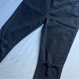 SAINT LAURENT PARIS black denim distressed cropped raw hem skinny jeans