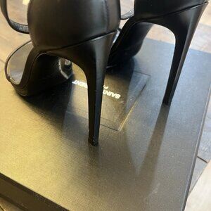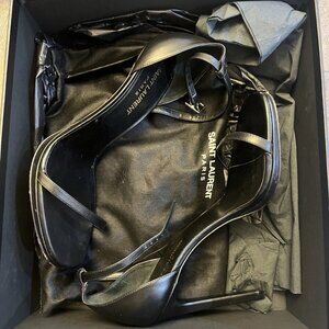 SAINT LAURENT PATENT LEATHER BLACK JANE SANDAL HIGH HEELS ANKLE STRAP