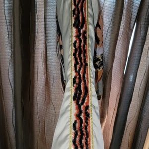 SAINT LAURENT Palm Tree Print Satin Bomber Jacket Unisex Size FR 46. Extra measurements approx....pit to pit 19"....waist 16"...length 23.5". Has 2 small spots/stains on sleeve. Jacket also has a few pulls...see photos provided and zoom in to see these details. In ggod condition. 2 front slash pockets and 2 inside pockets. Non -stretch fabric. Please see all photos and ask any questions before purchasing since they are part of description also.