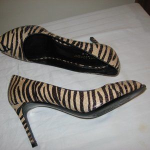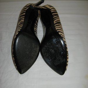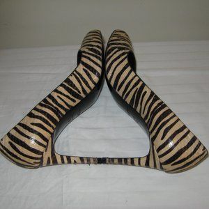 SAINT LAURENT Paris Zebra Striped Peep Toe Heels