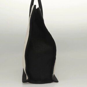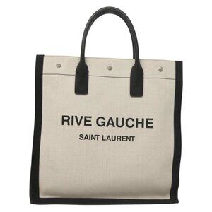 SAINT LAURENT Rive Gauche Hand Bag PVC Canvas Black White Silver