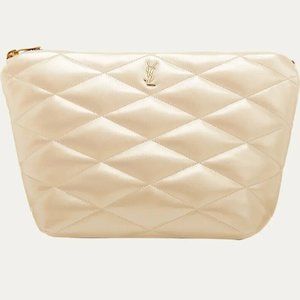 The Sade pouch is made from quilted lambskin leather with gold-toned hardware, including a zip top and the interlocking YSL logo. Use the interior slip pocket for your most essential items.
