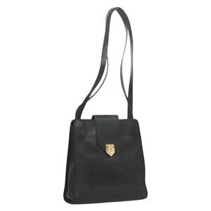 SAINT LAURENT Shoulder Bag Leather Black Gold Auth 132147