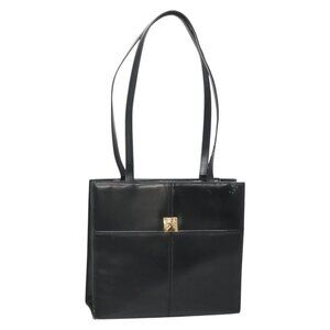 SAINT LAURENT Shoulder Bag Leather Black Gold Auth