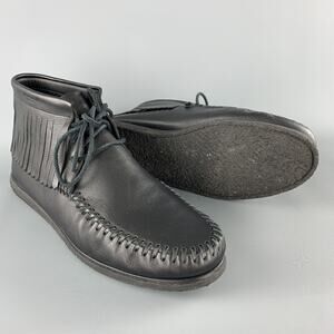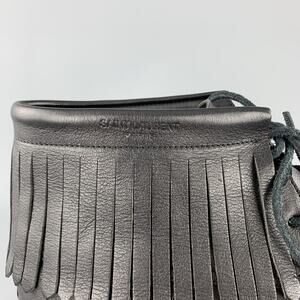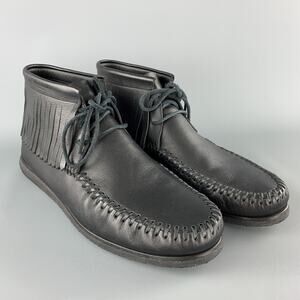 SAINT LAURENT Size 12 Black Leather Fringed Moccasin Style Boot Sneakers
