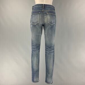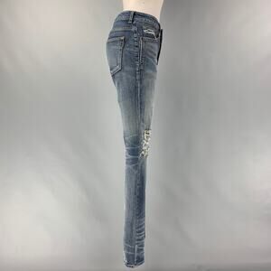 SAINT LAURENT Size 26 Blue Cotton & Elastane Distressed Skinny Jeans