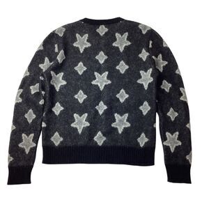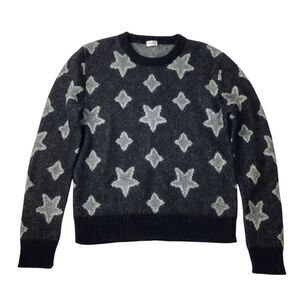 SAINT LAURENT Size XL Star Print Mohair Wool Blend Sweater Black Gray Stars
