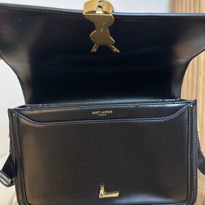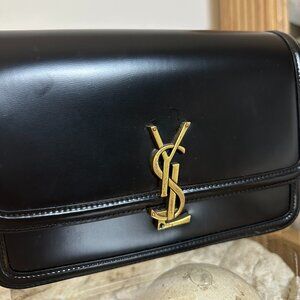 SAINT LAURENT Solferino Medium Shoulder Bag in Black Smooth Leather/Gold