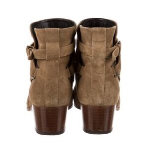 SAINT LAURENT Suede Ankle Strap Boots Size US 7.5 / 37.5 Neutral Tan