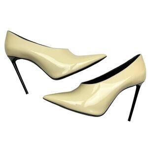 SAINT LAURENT Teddy High Vamp Patent Leather Pumps size EU 39.5 US 9.5 Coquille