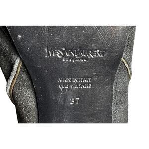 SAINT LAURENT TRIBUTE 105 BLACK SUEDE KNEE HIGH TALL PLATFORM HEELS BOOTS SIZE 37