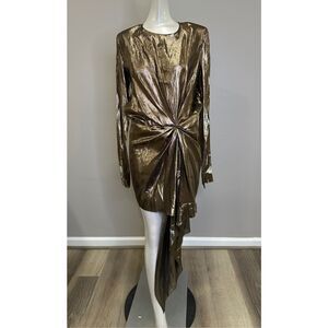 SAINT LAURENT WOMEN'S SILK LAME MINI DRESS IN GOLD SIZE 38 (6) $2995