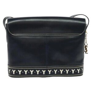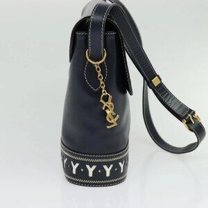 SAINT LAURENT Y Cut Shoulder Bag Leather Navy Gold