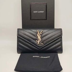 Pre Loved Saint Laurent YSL Cassandre Grained Large Flap Long Wallet. In Very Condition with minor signs of wear like Scratches.