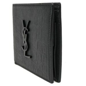 SAINT LAURENT YSL Logo Bifold Compact Wallet Embossing Leather BK Italy 84RL530