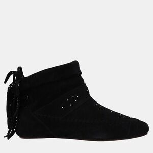 SAINT LAURENT boot bootie moccasin black EU 39 suede leather fringe studded new