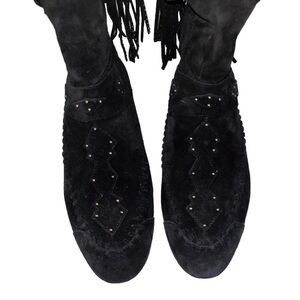 SAINT LAURENT bootie moccasin black size 9 suede leather fringe studded new