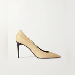 SAINT LAURENT's classic 'Anja' pumps are reworked in raffia for spring. They have the same pointed toed and smooth leather linings that provide structure. Wear yours with a midi dress or jeans. Heel measures approximately 85mm/ 3.5 inches