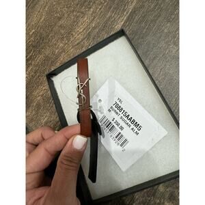 SAINT LAURENT Cassandre leather and gold-tone bracelet NWT