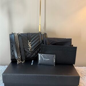 SAINT LAURENT Envelope Triquilt Medium YSL Shoulder Bag in Grained Leather