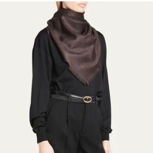 SAINT LAURENT Grand Carre Jacquard Silk-Wool Scarf In Coffee $650