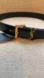 Saint Laurent's black leather belt featuring gold-tone metal square buckle and loop withYSL logo plaque.