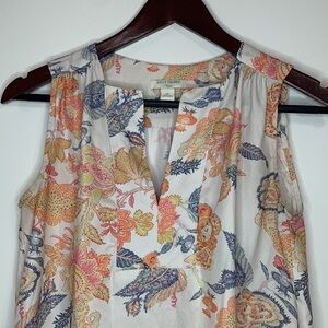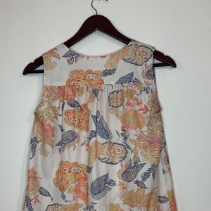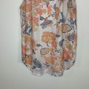 SAINT TROPEZ WEST Peach/Blue Floral Sleeveless Tassel Tie Top sieze XS