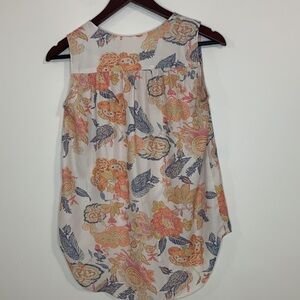 SAINT TROPEZ WEST Peach/Blue Floral Sleeveless Tassel Tie Top sieze XS 100% polyester super cute and soft
