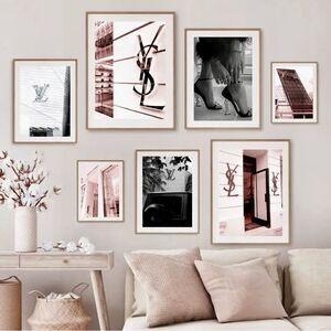 SAINT LAURENT Pink, and black luxury wall art home decor YOU CHOOSE 2!