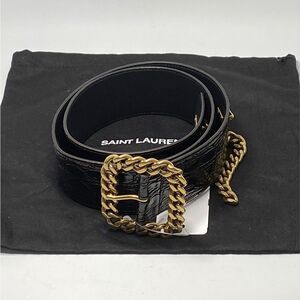 SAINT LAURENT Chain-trimmed Croc-embossed Leather Belt In Dark Brown size 85/34”