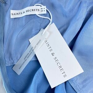 SAINTS + SECRETS Kamillia One-Shoulder Split Dress in Blue Size Small - NWT