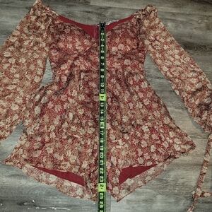 Saints + Secrets romper hello molly floral ruffled shorts tie detail sleeve size medium NEW
