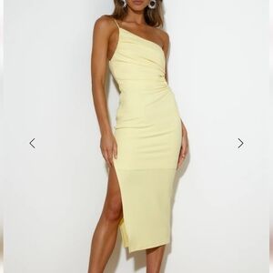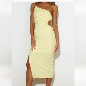 SAINTS+SECRETS Day To Night One Shoulder Cut Out Midi Dress. Yellow. XS NWT
