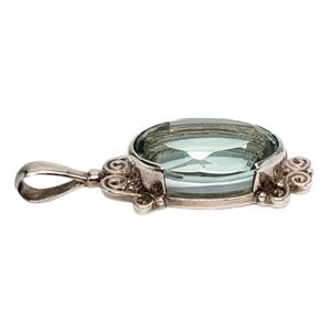 This gorgeous pendant by SAJEN features a blue topaz (25.90 mm x 17.84 mm) oval gemstones sent in a swirl sterling silver design.