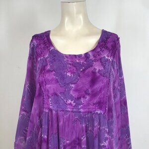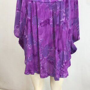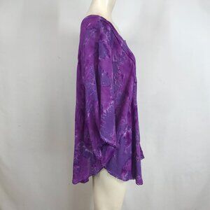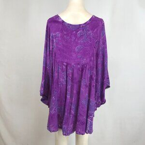 SAKKAS - WOMEN'S FREE SIZE - PURPLE GLEEO EMBROIDERED SEQUIN PONCHO BLOUSE TOP